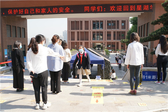 早上8点20,重庆市两江新区星湖学校学生小学生陆续背着书包回到学校。沉寂数月的校园,迎来孩子们久违的欢笑声。