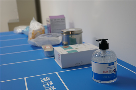 在初高中年级,学校在每个教室地面设置了一条“楚河汉界”,引导老师和学生在各自区域活动,保持间距、减少交叉。收发作业方面,在初、高中年级教室外的走廊上放置了专门用于各班收发作业本的桌子,每名学生有序将作业存放到桌子上,老师再来统一收取,尽量减少与学生的直接接触。
