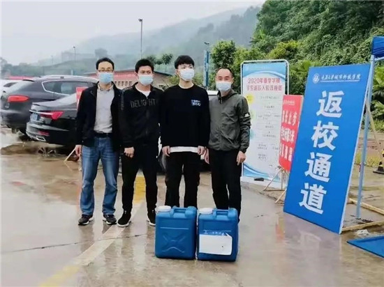 建筑学院2018级建筑学院专业2班学生王钦弘在返校之际,向学校捐赠100公斤消毒液,他谈到:“我主要考虑到,学校为准备返校复课,会提前对校园所有区域进行全面消毒,开学后在教室上课,在图书馆学习等等,每天都要定时消毒,所以就想着捐赠一些消毒液,来帮助学校抗疫和返校防控工作。”
