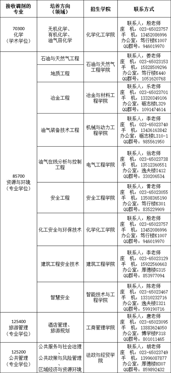 二、接收调剂的专业接收调剂的专业培养方向(领域)招生学院联系方式