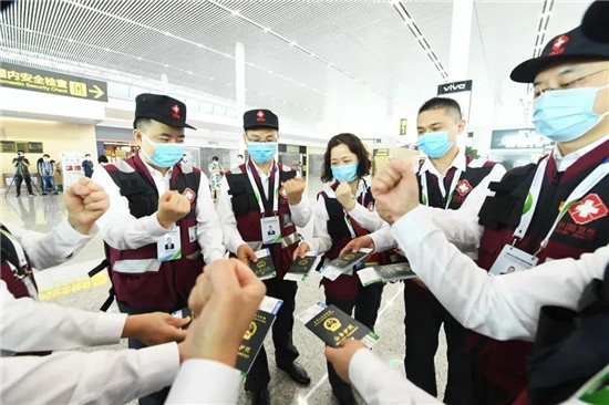 在机场,重医附二院党委书记王大刚为专家组成员们送行,他表示,希望出征的专家发扬“艰苦奋斗、甘于奉献、救死扶伤、大爱无疆”的精神,在受援国严谨工作,精心指导,加强合作,全力救治,携手共战新冠病毒,共克时艰。“你们一定要健康平安的回家,祝你们一路平安!”在亲友同事的握手、拥抱和真挚祝福中,专家们挥手告别。