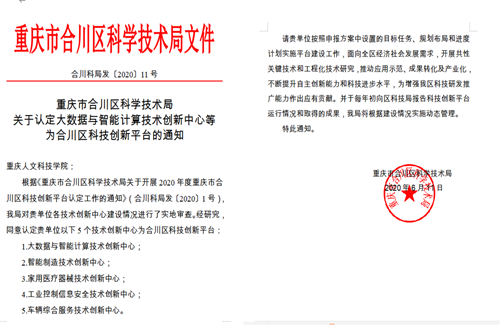 近日,重庆人文科技学院大数据与智能计算技术创新中心、智能制造技术创新中心、家用医疗器械技术创新中心、工业控制信息安全技术创新中心、车辆综合服务技术创新中心等5个技术创新中心获批合川区科技创新平台,实现学校厅局级以上高层次科研平台零的突破。