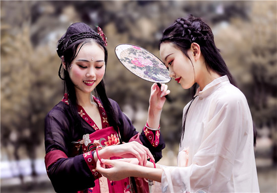 值得一提的是,参与拍摄的李佳窈和杨雅婷从中学到大学都是同班同学,已经学习古筝12年的她同样是一名汉服爱好者,杨雅婷提出想法后俩人一拍即合,在两天之内完成了查找资料、准备道具、联系摄影社帮忙等。“不仅是为了完成作业,我们希望这也能成为大学里一次难忘的经历”李佳窈兴奋地说道。