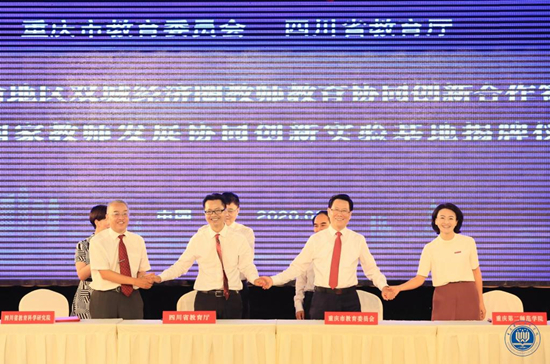 仪式上,重庆市教育委员会、四川省教育厅、重庆第二师范学院、四川省教育科学研究院共同签署了《推动成渝地区双城经济圈教师教育协同创新合作协议》。根据协议,双方将大力推进成渝地区双城经济圈教师教育一体化发展,依托两省市教师发展机构建立教师教育协同机制,共同组建“成渝地区双城经济圈教师教育协同创新发展联盟”,以促进教师教育优质资源共建共享,努力建设一批教师教育创新实验区和示范校,协同实施教师培养培训项目,共同助力教育脱贫攻坚,联合开展教师教育课题研究,共同打造在长江教育创新带、中西部乃至全国具有影响力的教师教育协同创新示范区。