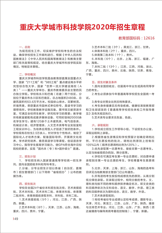 重庆大学城市科技学院2020年报考指南