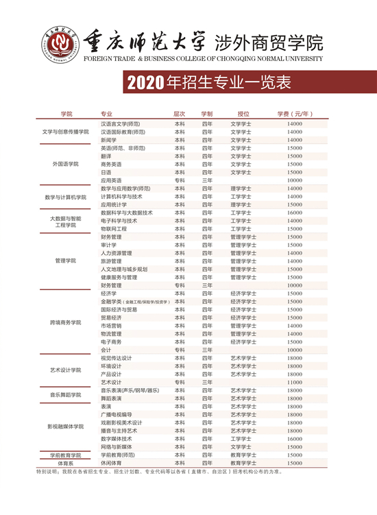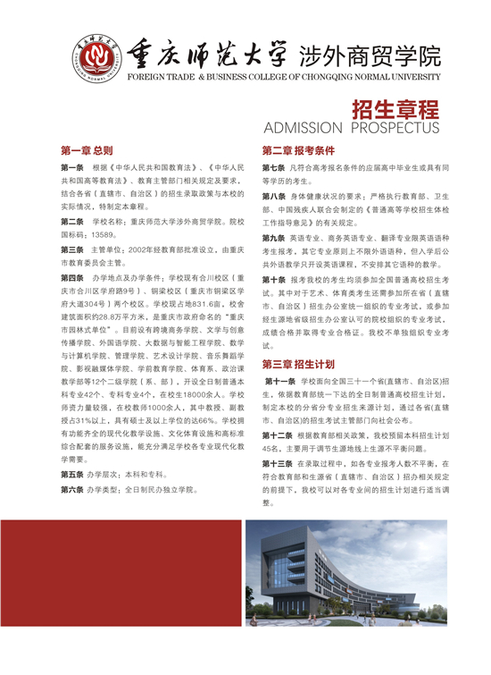 重庆师范大学涉外商贸学院2020年招生手册