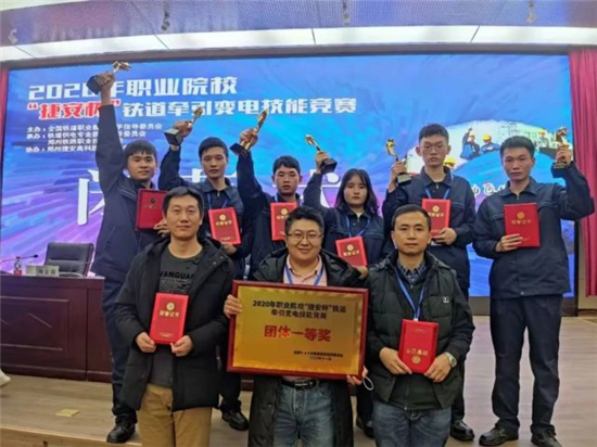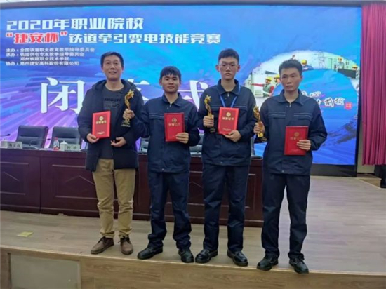 11月21日,2020年全国职业院校“捷安杯”铁道牵引变电技能竞赛在河南郑州落下帷幕,重庆铁路运输技师学院参赛团队荣获团体一等奖(第一名);学生张奇、吴昊、张志威获得A赛项团体二等奖;刘玉龙、谭坤、钟灿获得B赛项团体一等奖;学生张奇、吴昊、张志威、刘玉龙、谭坤、钟灿荣获“供电新星”称号;教师王震东、万驰荣获优秀指导老师。