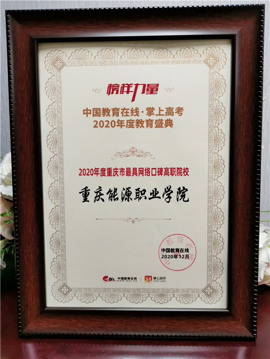 必威体育登录网址 重庆站讯 近日,必威体育登录网址 ·掌上高考“榜样力量——2020年度教育盛典”评选获奖名单揭晓,重庆能源职业学院荣获“2020年度最具网络口碑高校”荣誉称号。