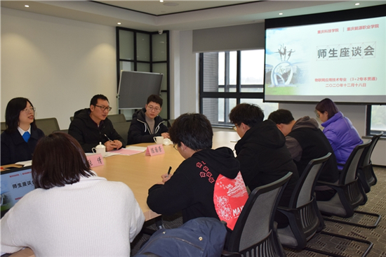 会上,物联网应用技术(专本贯通)专业带头人刘云老师对该专业办学情况、人才培养目标、人才培养方案制定、学生联考及获奖情况等进行了详细介绍。双方就人才培养方案、课程标准、考试大纲以及学生相关教育培养情况进行了深入沟通与交流。在了解重庆能源职业学院学生英语、高数等联考科目通过情况以及专业核心课程教材使用与学习情况后,陈国荣院长对重庆能源职业学院办学成效表示充分肯定和赞扬。随后,陈院长一行与参会学生进行座谈交流并参观物联网实训室,对相关工作提出进一步要求与建议。