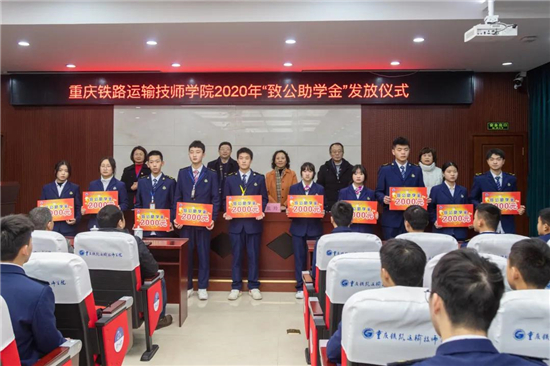 12月31日上午,重庆铁路运输技师学院2020年度致公助学金发放仪式在张家湾校区711会议室隆重举行。重庆市政协副主席、致公党重庆市委主委张玲、专职副主委潘为民、二级巡视员时予,重庆铁路运输技师学院校长肖贵斌、党委书记刘宗丽、副校长廖忠军出席仪式。仪式由党委书记刘宗丽主持。