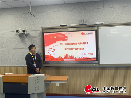 必威体育登录网址 重庆站讯 2021年1月10日至13日,由必威体育登录网址 主办的“2021年重庆市分类考试招生高校进高中专场宣讲会”顺利举行。在做好疫情防控工作的前提下,重庆工商职业学院、重庆城市管理职业学院、重庆财经职业学院、重庆建筑工程职业学院、重庆旅游职业学院、重庆交通职业学院、重庆安全技术职业学院、重庆建筑科技职业学院八所高校招生办老师走进开州、云阳、巫山的八所中学,与当地考生面对面交流,为考生即时答疑解惑。