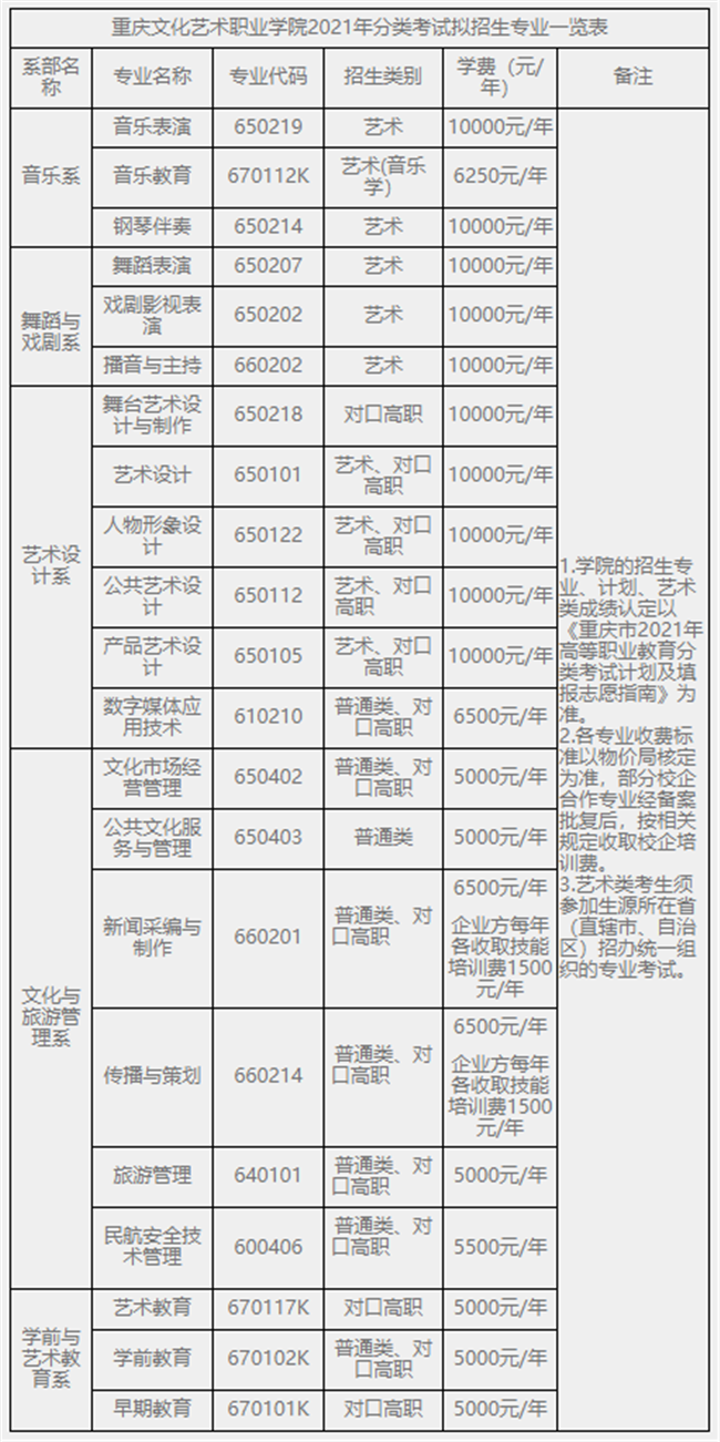 注: 学院招生代码、招生专业、招生人数等以重庆市教育考试院统一公布为准。