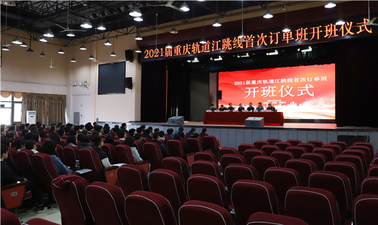 根据工作安排,重庆交通开投集团所属重庆公共运输职业学院2021届重庆轨道江跳线订单班,于3月4日上午在江津双福主校区学术报告厅正式开班,培训结束、考核合格后,入选订单班的该校157名2021届应届毕业生将入职今年即将建成通车的重庆轨道江跳(江津-跳蹬)线工作。