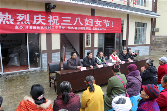 重庆城市管理职业学院社工专业党支部书记李飞虎首先为枞林村妇女送上节日祝福。“妇女是人类文明的开创者、社会进步的推动者,在各行各业书写着不平凡的成就。”“妇女是物质文明和精神文明的创造者,是推动社会发展和进步的重要力量。没有妇女,就没有人类,就没有社会。”李飞虎向大家宣传了习近平总书记对妇女同志的重要讲话精神,并鼓励大家在新的时代、新的征程中,以巾帼不让须眉的豪情和努力,发挥好“半边天”作用,为家庭和睦、社会和谐贡献智慧和力量。
