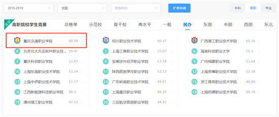 全国民办高校第一名!重庆交通职业学院荣登“全国职业院校学生竞赛排行榜”