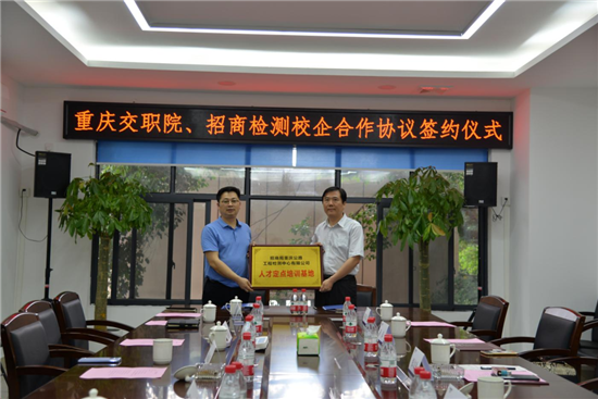 5月11日,重庆交通职业学院与招商局重庆公路工程检测中心有限公司签订战略合作协议,并互认挂牌建立“招商局公路工程检测中心有限公司人才定点培养基地”和“重庆交通职业学院实习就业基地”。双方将在高技能人才培养、智慧交通建设及产、学、研融合方面开展合作。重庆交通职业学院董事长张文礼与招商局重庆公路工程检测中心有限公司党委书记、董事长蒋迪斌分别代表双方签订战略合作协议。