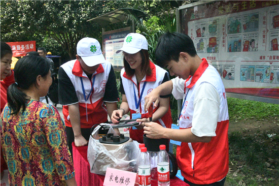 志愿服务分传统康复、家电维修、义剪义诊、健康咨询、反诈骗科普、智能手机使用咨询、下水道疏通、急难愁盼心愿收集等八个板块。志愿者们各展所长,发挥专业优势为大家提供服务,实实在在为群众办实事、解难题、谋幸福,居民体验后纷纷点赞说好。“感谢党和国家给我们这么好的福利,感谢志愿者提供这么多‘大餐’,服务非常贴心,我感到很幸福,希望你们以后多来呀!”社区居民庹昌淑开心地对社工说。