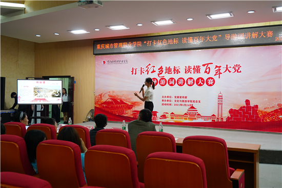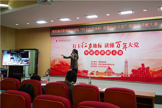 习近平总书记指出:“我们党的一百年,是矢志践行初心使命的一百年,是筚路蓝缕奠基立业的一百年,是创造辉煌开辟未来的一百年。”“三个一百年”高度浓缩了中国共产党领导人民进行革命、建设、改革的漫漫征程,中国共产党在荆棘中开路,历经洗礼,愈加坚韧不摧。为庆祝中国共产党百年华诞,深入学习贯彻习近平总书记对革命文物工作做出的重要指示精神,5月24日,重庆城市管理职业学院在学校一会议室举办“打卡红色地标 读懂百年大党”导游词讲解大赛,200余名师生在参赛讲解员的带领下,跟随习近平总书记的足迹,通过一件件革命文物、一个个“红色地标”、一堂堂生动的“党史课”,深刻地读懂一个百年大党历尽艰辛、缔造东方奇迹的“密码”。
