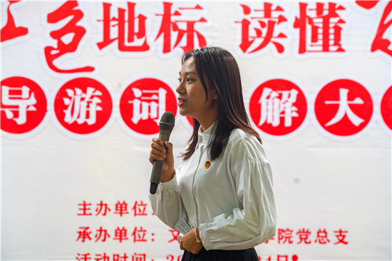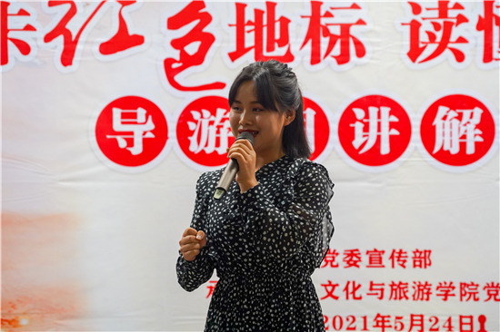 来自重庆城市管理职业学院各二级学院的14名参赛选手精神饱满,声情并茂,用抑扬顿挫的语调,铿锵有力的气势,热情饱满的情感将在场师生一次次带入到激昂的情绪之中,恰如身临其境,真切感受到了党的百年艰辛奋斗历程,领悟到了中国共产党始终牢记初心不忘使命,一步步实现国家富强的宏伟目标,追求民族复兴的伟大梦想的使命担当。重庆城市管理职业学院文化与旅游学院的杨和坤为我们讲解了河南新县,让大家对鄂豫皖革命根据地和这个走出了43位将军和50位省级领导干部的将军县有了更加深刻的认识。重庆城市管理职业学院商学院的包艳玲同学为我们讲解了浙江的嘉兴,浙江嘉兴的一艘小小红船,承载着“开天辟地、敢为人先的首创精神,坚定理想、百折不挠的奋斗精神,立党为公、忠诚为民的奉献精神。”其他参赛选手陆续带领大家“走近”陕西赵金、湖南郴州、北京香山、贵州遵义、江苏徐州、山东临沂、宁夏将台堡、江西于都、安徽金寨、山西吕梁、河北西北坡、福建古田等红色革命圣地,一次次接受革命精神的洗礼。