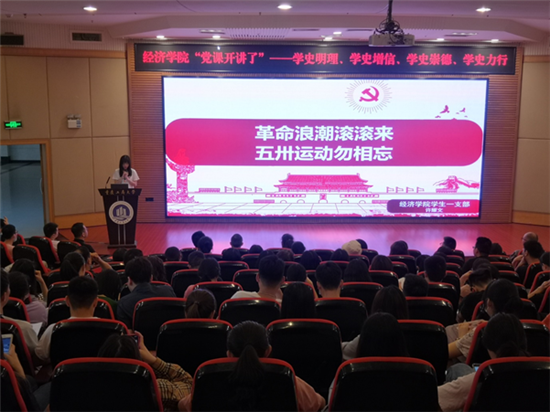 近期,重庆工商大学经济学院党委在博智楼7200报告厅举办了党史学习系列活动“党课开讲啦”之 师生共讲百年奋斗史,学院党员和入党积极分子共270多人参加了此次学习活动,活动由学院专职组织员雷菁主持。