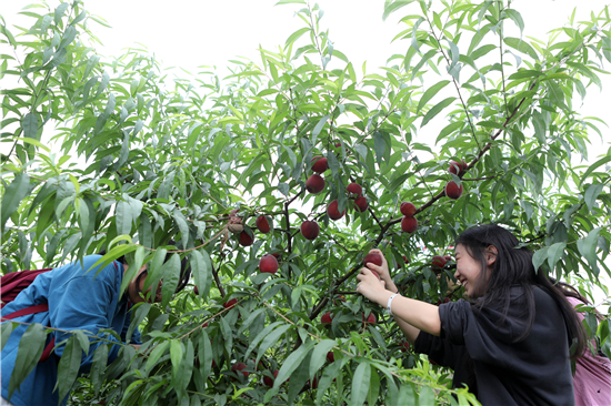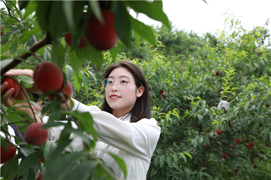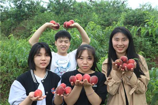 初夏时节,重庆科创职业学院月亮湖畔花果山上1000多棵棵桃树喜获丰收。
