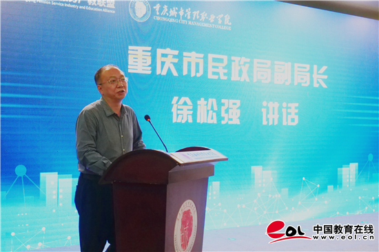 徐松强在讲话中强调了人口老龄化带来的社会问题、数量庞大的老年人多元需求以及围绕养老产生的种种焦虑。他表示,产教融合能够更好地调动社会资源,重庆养老服务产教联盟是优化整合资源、引领行业创新的必然选择,也有利于职业院校与行业企业优势互补、互利共赢,共同助推重庆市老龄事业全面协调可持续发展。