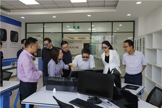 在校期间,胡智勇一行实地参观学校全国城轨高铁技术共享实训基地与虚拟仿真创新实验实训中心。