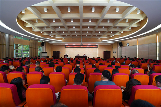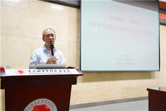 为深入学习贯彻习近平总书记在党史学习教育动员大会上的重要讲话精神,扎实开展党史学习教育,教育引导全校师生学史明理、学史增信、学史崇德、学史力行,进一步提升重庆城市管理职业学院党建和思政工作队伍育人能力,坚守立德树人,强化使命担当,为党育人、为国育才,推动学校事业高质量发展,以优异成绩迎接中国共产党建党100周年。6月8日,全国时代楷模、大连海事大学博士生导师曲建武教授走进重庆城市管理职业学院作了《学史增信 铸魂育人 当好担当民族复兴时代重任的“大先生”》的党课报告。学校全体科级及以上干部、党支部书记、思政课教师、辅导员、党史学习教育领导小组办公室成员近200人聆听报告。