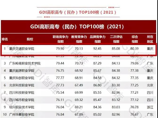 通过三年建设,学校综合办学实力增强,师资力量、改革发展能力、服务社会能力、持续发展能力不断增强,在中国高等教育学会高校竞赛评估和管理体系研究工作组发布的2016-2020年全国民办高职院校大学生竞赛排行榜中排名第一,在广州日报数据和数字化研究院(GDI智库)发布的2019、2021年“GDI高职高专(民办)TOP100榜”中排名全国第一!