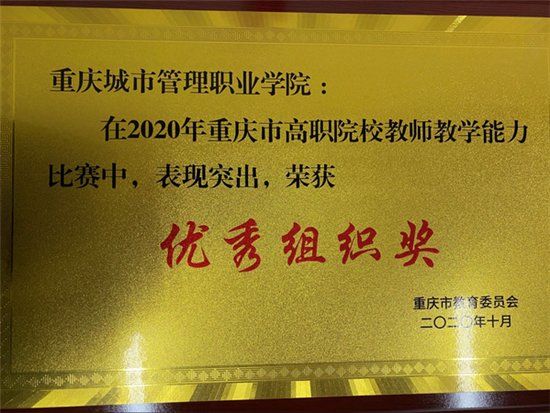 重庆城市管理职业学院荣获2020重庆市高职院校教师教学能力比赛优秀组织奖