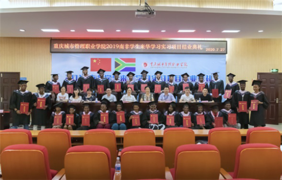 依托市级平台勤发力。重庆市教育委员、教育部中外人文交流中心、(南非)中国文化和国际交流中心、中国-南非职业教育合作联盟,签署战略合作协议,合作开展“一带一路”教育行动和推进各领域相关人文交流,有效推进中非教育合作、人文交流,产业合作、商贸对接,对构建中非命运共同体具有十分重要的意义。重庆城市管理职业学院贯彻落实相关文件精神与国际化战略部署,以中国-南非职业教育合作联盟理事单位的身份,积极投入“一带一路”教育行动的建设执行中,于2019年7月接收南非政府选派的30名公派留学生进入重庆城市管理职业学院文化与旅游学院环境艺术设计专业进行为行一年的进修学习,其中包含半年的专业学习和半年的企业实习,并于2020年7月顺利结业归国。
