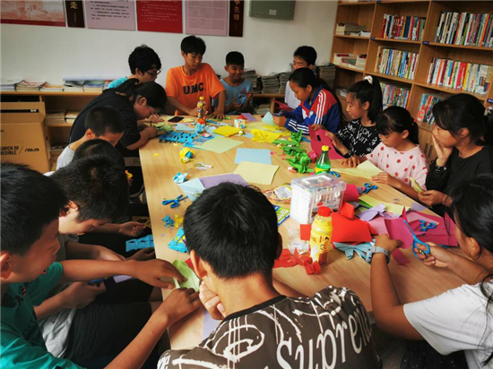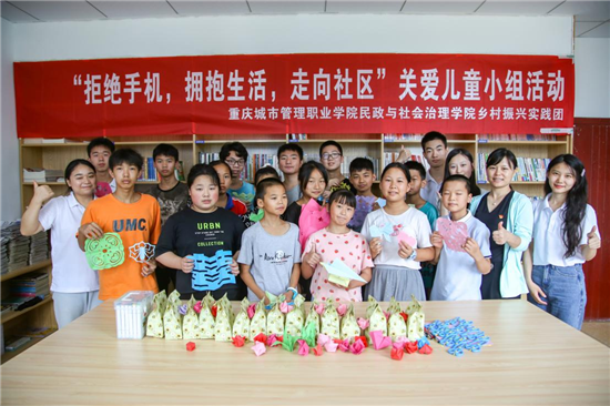 7月19日,为丰富乡村青少年儿童暑期生活,促进当地乡风文明建设,激发学生自理自控自学等内生动力能力,从而强化人才培养,培育文明新风,重庆城市管理职业学院民政与社会治理学院乡村振兴实践团携手夜力坪村村委、驻村工作队在重庆市丰都县三建乡夜力坪村便民服务中心阅览室开展“拒绝手机,拥抱生活,走向社区”关爱青少年儿童小组活动。