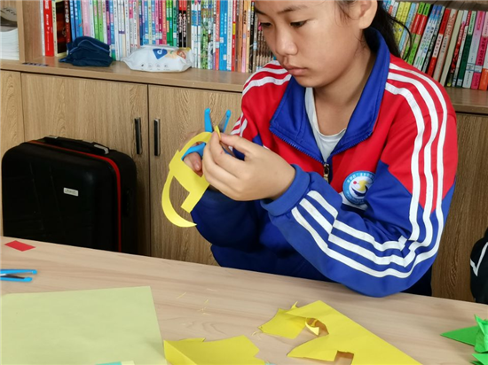 小组工作者教青少年儿童制作手工剪纸