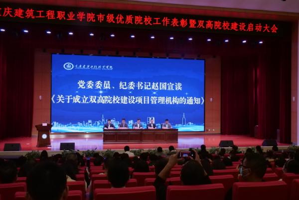 会上,副校长郑周练宣读了市教委、市财政局《关于公布重庆市高水平高职学校和专业群立项建设名单的通知》,纪委书记赵国宣读了学校《关于成立“双高院校”建设项目管理机构的通知》。