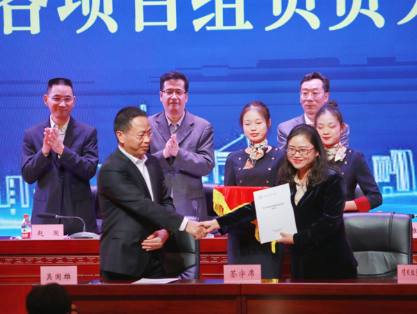 随后,校长吴国雄分别与双高建设各项目组负责人签订责任书,双高建设项目组负责人代表张春丽与任务完成人代表黄春蕾签订了年度任务书。