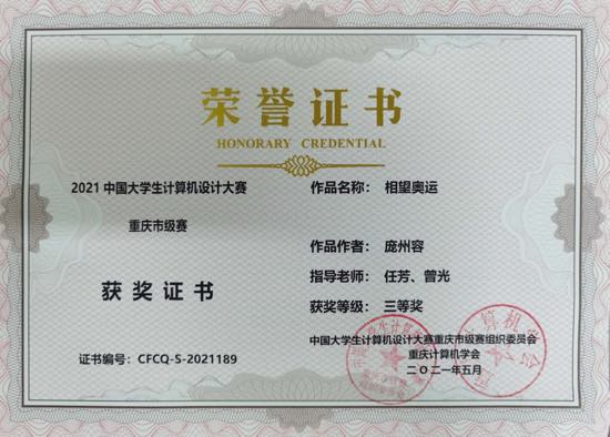 近日,中国大学生计算机设计大赛重庆市赛组委会公布2021年市赛获奖名单,重庆交通开投集团所属重庆公共运输职业学院榜上有名,以2022年北京冬奥会和中华体育精神为主题的两件参赛作品,分获数媒静态设计普通组一等奖、三等奖。