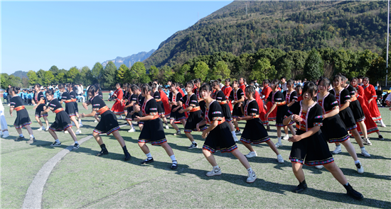 11月25日下午,酉阳职业教育中心运动场内音乐声、掌声此起彼伏,热闹非凡,一年一度的新生土家摆手操大赛正精彩上演。