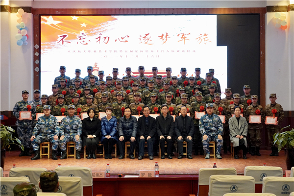 2021年12月26日,重庆航天职业技术学院在江津校区学术报告厅举行第五届定向培养士官入伍欢送仪式,学校副校长罗能,校长助理、江津校区管委会主任屈涌杰,士官学院以及其他职能部门部分领导、教师出席了本次仪式。