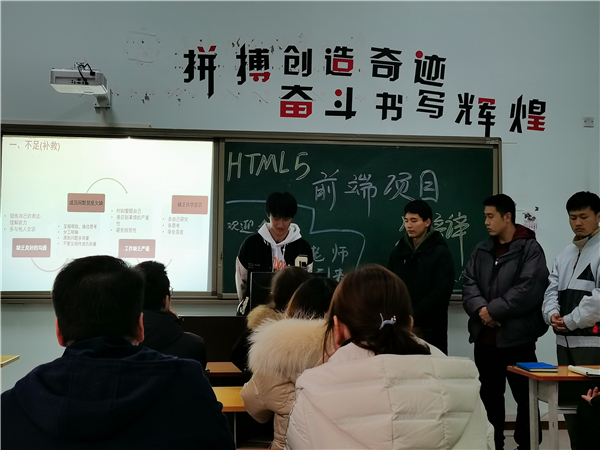 12月30日上午,图书馆阶梯教室,“擘画未来——职业规划展演”决赛现场。学生轮流上台,通过综合项目的PPT展示和讲解“我的职业规划”。台下坐着《职业规划与就业指导》任课教师刘秀敏博士牵头的项目考查组,本项目组成员包括了《心理健康教育》《数学与经济》《创新创业》《计算机应用基础》等课程的教师团队。教师们在耐心听完学生讲解之后,针对性提出问题由学生答辩,与学生进行探讨并给予指导。随后各课程任课教师根据学生在此项目中分别表现出来的职业规划能力、身心保健规划、三账本规划以及现场多媒体展示与演讲效果,对学生模块课程的知识、思维、能力等学科综合素养掌握情况,结合预设的评定标准,分别给学生赋分。