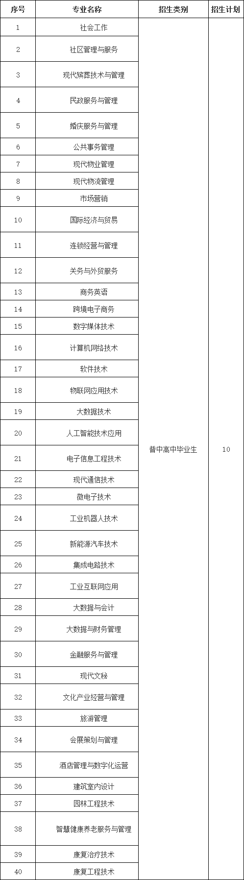 我校2022年在陕西省单独招生专业40个,招生计划10人。具体如下: