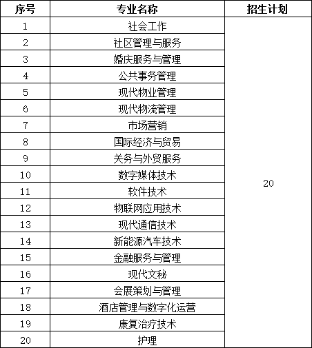 我校2022年在海南省高职单独招生专业20个,招生计划20人。具体如下: