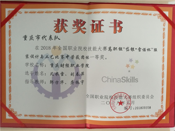 全国职业技能大赛“服装设计与工艺”赛项一等奖