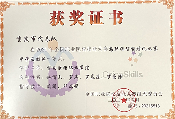 全国职业技能大赛“智能财税”赛项一等奖