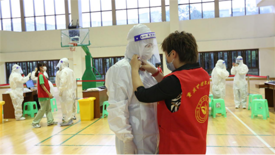 健全机制,全力保障,当好疫情防控“后勤兵”。党员先锋志愿服务队聚焦思想引导、人文关怀、心理疏导、精准排查、志愿服务、后勤保障等重点任务,列出资源清单、需求清单,确定志愿服务清单,进一步健全完善工作机制。全体队员主动冲锋、靠前服务,快速响应、及时到位,集结更多优势资源力量,支持和保障核酸检测现场、在线教学环节、后勤保障服务、急难险重任务等工作,积极助力打赢校园疫情防控保卫战。