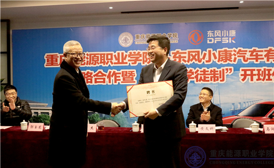 近年来,重庆能源职业学院作为全国教育系统先进集体、市级优质高等职业院校、重庆市“双高”专业群建设单位,认真落实党中央加快现代化职业教育发展的战略部署,立足服务区域经济发展,对接产业紧贴行业。2019 年 12 月 19 日,该校与东风小康汽车有限公司正式签约,成立了“小康汽车培训学院”。双方通过创新人才培养模式,开展“三嵌式工学结合试点班”“企业员工新型学徒制试点班”,开发校企合作双元教材以及建立“教师企业实践流动站”等具体做法,在汽车专业群建设、实训基地建设、人才培养与职工培训、“双师型”教师队伍建设方面取得了显著成效,切实提高了办学育人水平,为重庆汽车智能制造经济发展提供了有力的人才支撑。