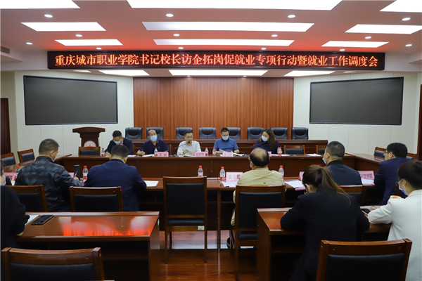 5月17日,在博学馆510会议室,重庆城市职业学院召开书记校长访企拓岗促就业专项行动暨就业工作调度会,学校党委书记张绍荣,党委副书记、校长唐玉林,党委委员、副校长文斌,教学工作部、科研与发展规划中心、学生工作部负责人,各二级学院书记(副书记)、院长、就业干事、毕业班辅导员及就业创业服务科全体工作人员参会。