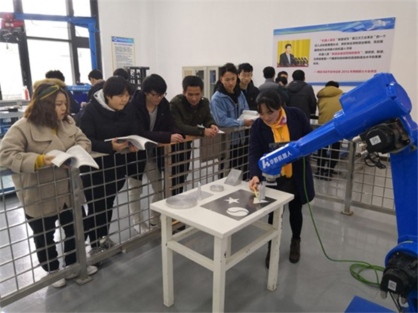 智能制造工程学院借助“育创机器人实践教学基地”开展工业机器人体验活动。让机器人走进广大学生的生活,真正实现“技能让生活更好”的美好愿景。通过现场体验,同学们对工业机器人的操作编程和应用场景有了更深刻的了解,表示在未来的学习工作中要重点学习相关技能技术。