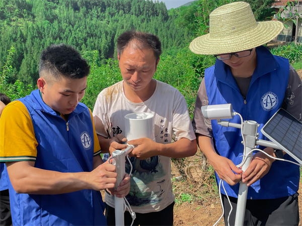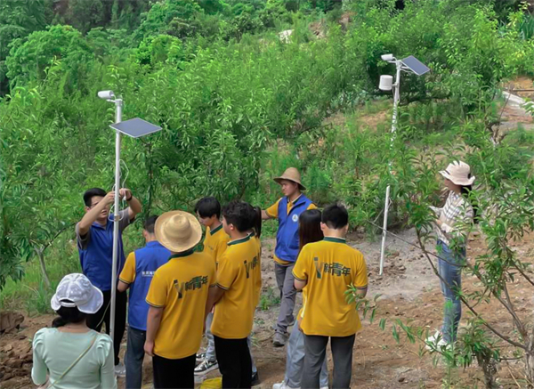 6月8日上午,在平河乡龙潭村村支书、村主任董小梅的带领下,“新青年”数字技术团队前往“李飨家园”数字果园种植基地,调试农业数据监测设备。这是龙潭村的首个数字化农业气象站,并实现了该村移动物联网设备对基础数据的实时采集。龙潭村副书记田加双感叹道:“你们安装的这个数据系统太有用了,以后我坐在屋里也可以随时看到果园的情况,太方便了!”