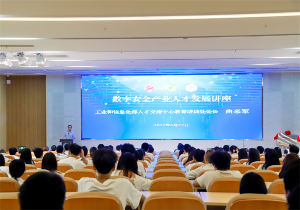 同日,数字安全产业人才发展主题讲座在永川举行,工业和信息化部人才交流中心教育培训处处长曲来军、三六零政企安全集团教育行业总经理李强、360政企安全集团教育行业技术经理冯涛等进行主题演讲。