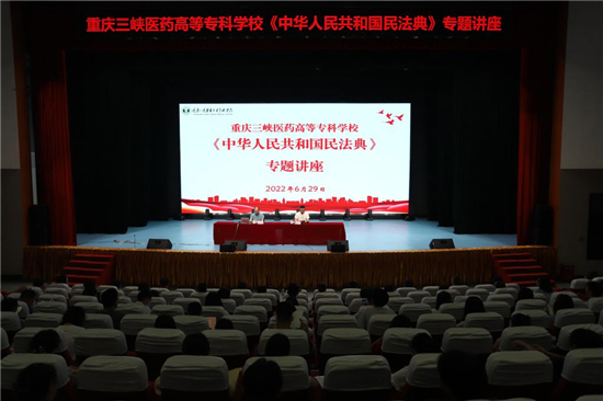 为深入贯彻落实习近平法治思想,进一步学习好、宣传好、贯彻好《中华人民共和国民法典》,6月29日,重庆三峡医药高等专科学校在学术中心剧场举办民法典专题辅导讲座,重庆三峡学院法学博士、教授秦祖伟授课,学校班子成员、全校教职工参加。讲座由副校长张建忠主持。